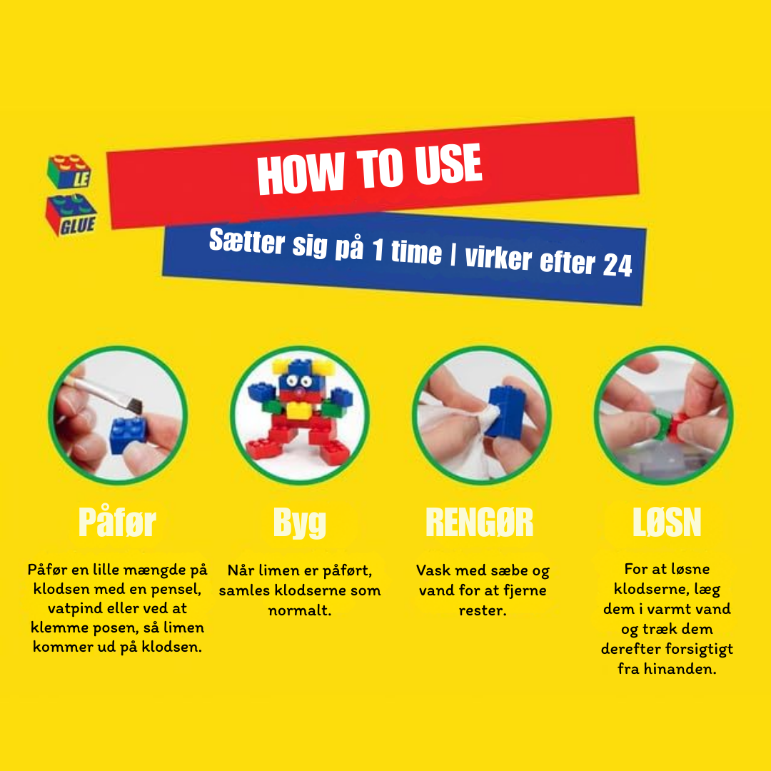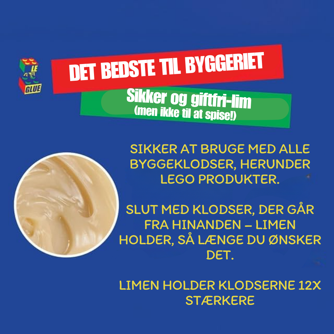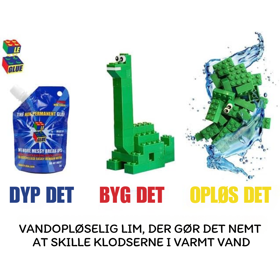 Om Le Glue - Lego Lim - Midlertidig Lim til Lego, som kan opløses i vand - Non-Permanent Glue - Giftfri & Sikker for Børn