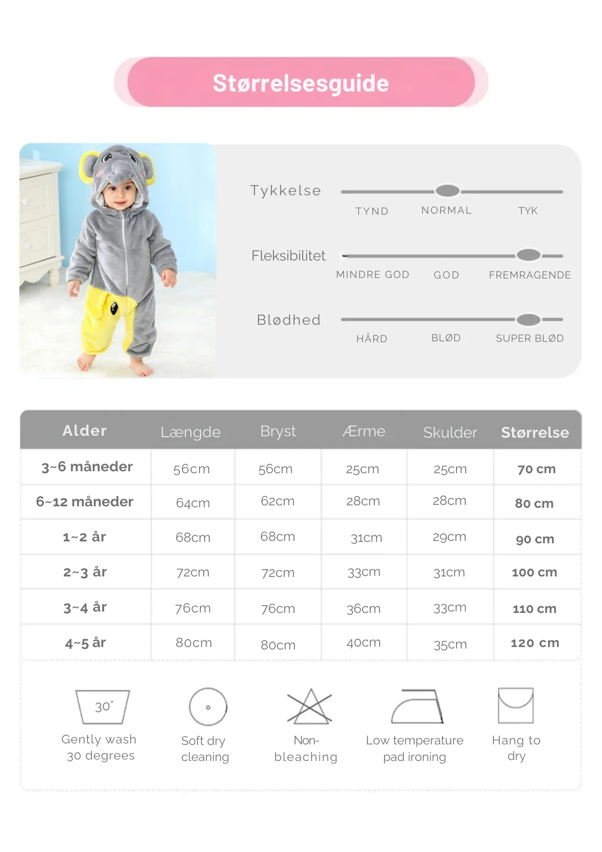 Let rengøring og vedligeholdelse med maksimalt 30 grader maskinvask.